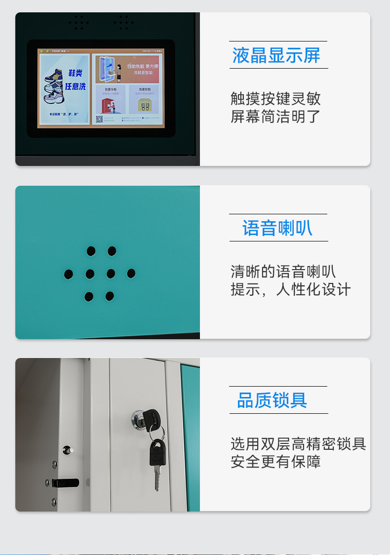 智能洗鞋柜,用戶掃描洗鞋柜,進(jìn)入存鞋、取鞋、下單三個(gè)操作步驟,化繁為簡(jiǎn)讓使用更簡(jiǎn)潔。